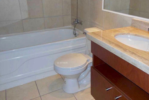 Baño 1: WC, Vanitorio de granito, Tina completa